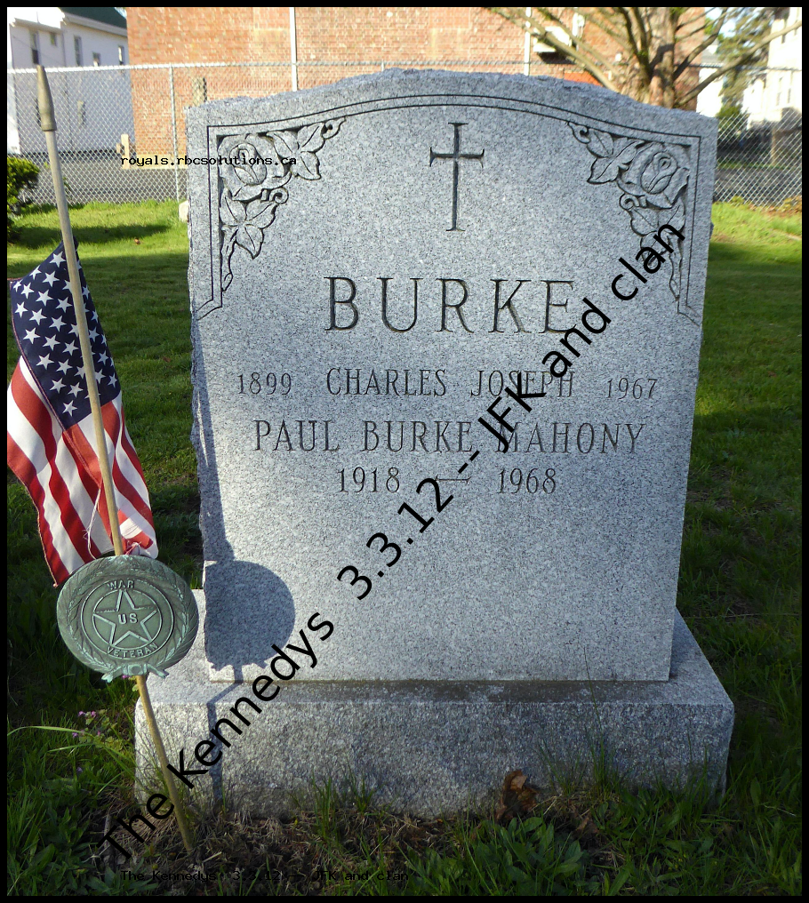 Birth 22 Oct 1898 East Boston, Suffolk County, Massachusetts, USA Death 14 Nov 1974 (aged 76) Brookline, Norfolk County, Massachusetts, USA Burial Holy Cross Cemetery and Mausoleum Malden, Middlesex County, Massachusetts, USA Family Members Parents Patrick Joseph Kennedy 1858–1929 Mary Augusta Hickey Kennedy 1857–1923 Siblings Joseph Patrick Kennedy 1887–1936 Joseph Patrick Kennedy 1888–1969 Francis Benedict Kennedy 1891–1892 Mary Loretta Kennedy Connelly 1892–1972 Spouse Charles Joseph Burke 1899–1967 (m. 1924) Children Thomas Francis Burke 1933–2018 Created by: PupDawg Added: 18 Jul 2011 Find a Grave Memorial 73544283 | ||||||||||||||||||||||||||||||||||||||||||||||||||||||||||||||||||||||||